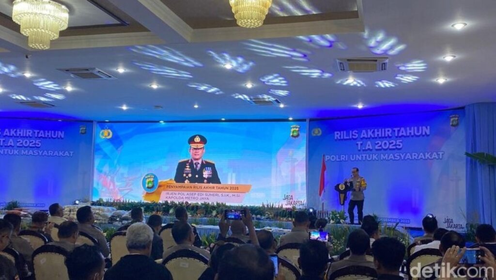 Jakarta – Polda Metro Jaya menggelar Rilis Akhir Tahun (RAT) 2025 pada Rabu (31/12/2025) di gedung BPMJ, Jakarta Selatan. Acara ini memaparkan capaian kinerja sepanjang tahun dalam menjaga kondusivitas ibu kota dan mendukung program pemerintah pusat.