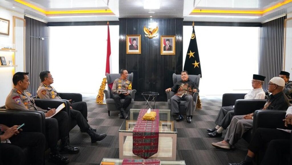 Palembang – Kapolda Sumatera Selatan (Sumsel), Irjen Sandi Nugroho, menggelar pertemuan silaturahmi dengan Forum Kerukunan Umat Beragama (FKUB), Majelis Ulama Indonesia (MUI), dan Lembaga Dakwah Islam Indonesia (LDII) di Gedung Presisi Mapolda Sumsel, Jumat (20/2/2026). Pertemuan ini bertujuan untuk memperkuat kolaborasi dalam menjaga keamanan dan ketertiban masyarakat (kamtibmas) di wilayah Sumsel.