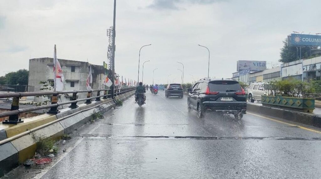Pantauan di lokasi pada Sabtu (7/2/2026) pukul 11.00 WIB, kondisi Flyover Ciputat, Jalan Dewi Sartika, menunjukkan adanya genangan air di sisi kiri dan kanan jalan. Sejumlah titik jalan tampak rusak dan berlubang, terutama pada bagian sambungan flyover. Pengendara sepeda motor yang melintas beberapa kali terlihat sedikit kehilangan keseimbangan saat tidak menyadari adanya lubang yang tergenang air.