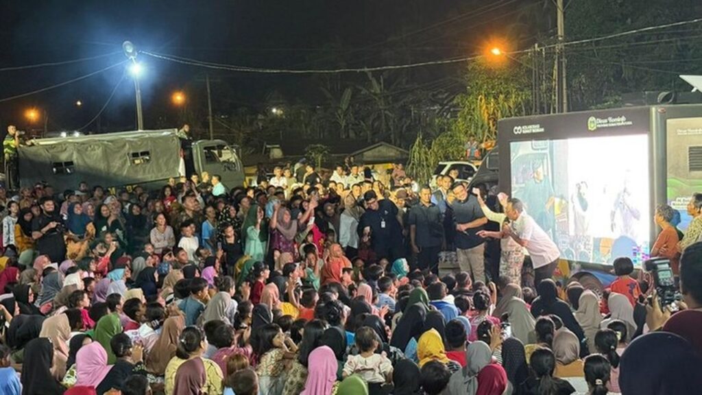 Selain menari, warga juga dihibur dengan pemutaran film melalui videotron yang disediakan di area pengungsian. Kegiatan ini menjadi sarana pelepas penat dan pengalih perhatian dari trauma bencana yang baru saja mereka alami.