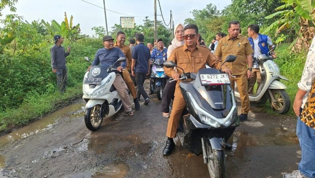 Gubernur Banten, Andra Soni, secara langsung meninjau kondisi salah satu jalan desa yang menjadi prioritas perbaikan di Desa Palasari, Kecamatan Legok, Kabupaten Tangerang, pada Senin (19/1/2026). Dalam kunjungannya, Gubernur Andra Soni mengendarai sepeda motor melintasi jalan aspal yang dilaporkan rusak parah, dipenuhi lubang besar dan genangan air.