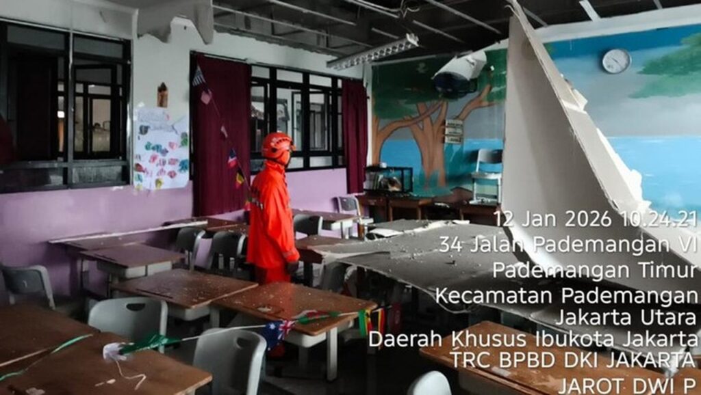 Jakarta – Plafon di SDN 05 Pademangan Timur, Jakarta Utara, ambruk pada Senin (12/1/2026) pagi saat para siswa sedang menyantap menu makan bergizi gratis (MBG). Kepala Pusat Data dan Informasi (Pusdatin) BPBD DKI Jakarta, Mohamad Yohan, memastikan tidak ada korban jiwa dalam peristiwa tersebut.