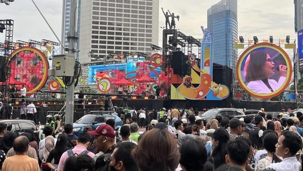 Kawasan Bundaran HI, Jakarta, mulai dipadati warga yang menanti perayaan pergantian tahun menuju 2026. Pantauan di lokasi pada Rabu (31/12/2025) sore, warga telah berdatangan dan mendekati panggung yang disiapkan di dekat Monumen Selamat Datang.
