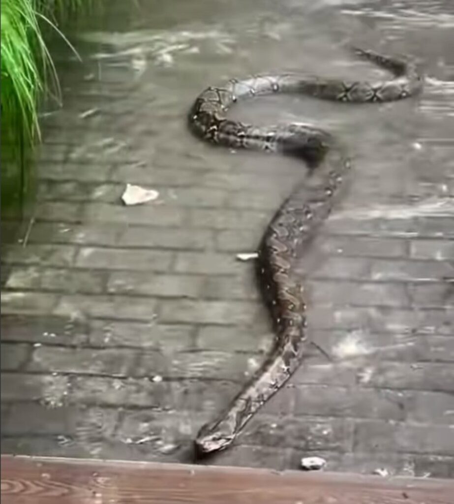 Saat ditemukan, ular tersebut berada di luar ruko, tepatnya di area parkir yang saat itu tergenang banjir dengan ketinggian sekitar 10 cm. Warga sempat merekam momen saat ular itu bergerak perlahan menuju arah toko. Tak lama berselang, petugas pemadam kebakaran yang sedang memantau situasi banjir melintas.