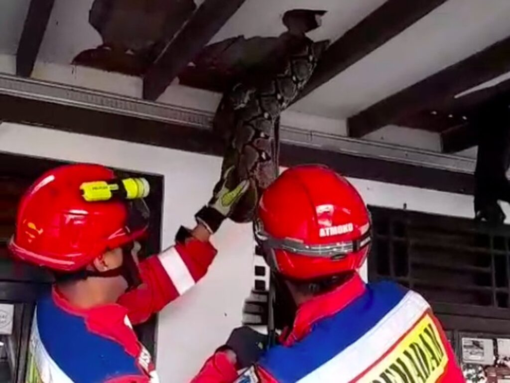 Seekor ular sanca berukuran besar dengan panjang diperkirakan mencapai 4 meter ditemukan bersembunyi di plafon rumah warga di kawasan Pasar Minggu, Jakarta Selatan. Penemuan hewan liar ini sontak membuat warga sekitar heboh.