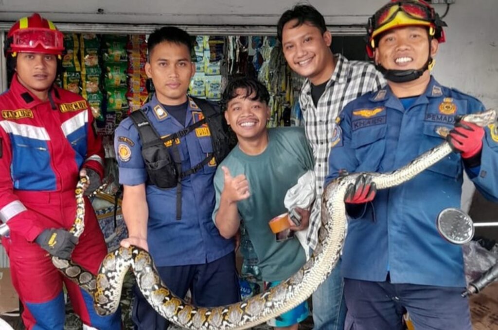 Bogor, Jawa Barat – Seekor ular piton berukuran besar membuat geger karyawan sebuah toko di Desa Banjar Waru, Kecamatan Ciawi, Kabupaten Bogor. Penemuan tak terduga ini terjadi saat para pegawai tengah melakukan kegiatan bersih-bersih rutin.